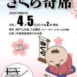 2026-02-14 / 最終更新日時 : 2026-02-14 nedoko 寝床の会落語会 4月5日(日) 14:00 さくら寄席(関戸公民館大会議室) せいせき桜まつり協力事業として、もうおなじみになりました、 さくら寄席を今年も開催します。 日時 4月5日(日)14:00から 場所 関戸公民館大会議室(ヴィータモールせいせき8階) 木戸銭 無用 主催・問合せ 関戸公民 […]