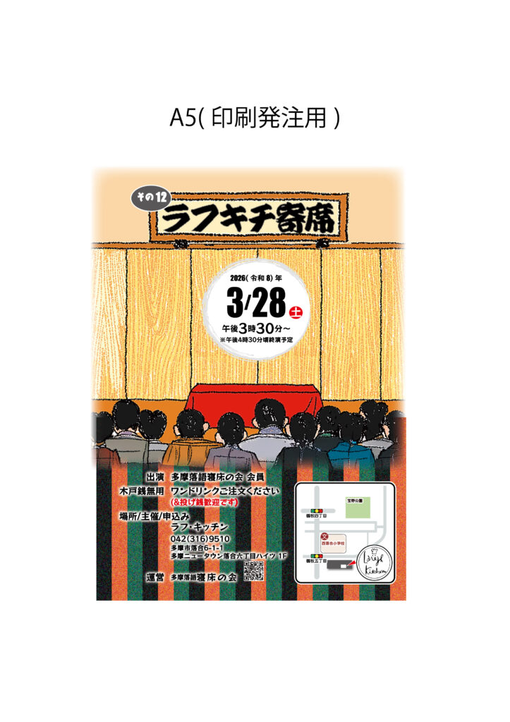 2026-02-13 / 最終更新日時 : 2026-02-13 nedoko 出張落語会 3月28日(土)15:30 第12回ラフキチ寄席(落合ラフキッチン) 柴奴、弦六、楽輝の3人でお邪魔します。 今回は、15時30分開演なので、お間違えのないよう お越しください。よろしくお願いします。 Follow me! FacebookXBlueskyHatena