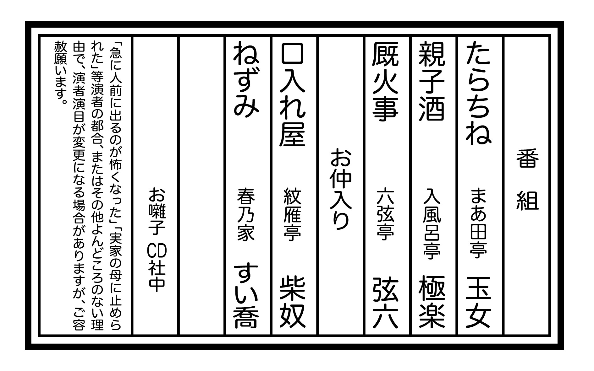 2024(令和6)年11月20日(水)15:00 第4回ラフキチ寄席